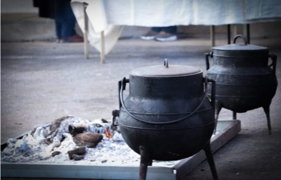 Na sua confeção são utilizados os miúdos de carneiro e o bucho, galinha, presunto e salpicão. Há também quem adicione umas sopas de trigo, temperado com pimenta a gosto e hortelã.